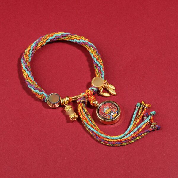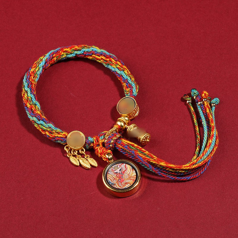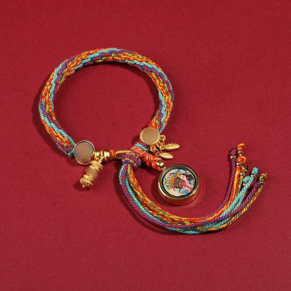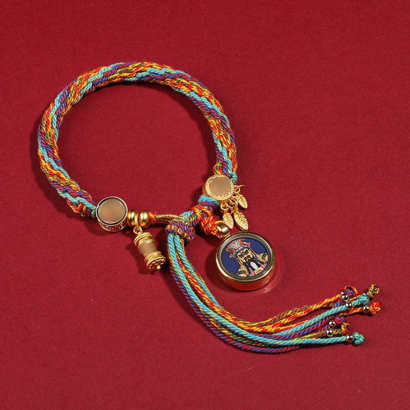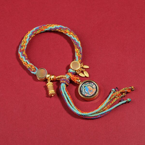 Tibetan-style Thangka Bracelet – Hand-Rubbed Cotton String Woven Bracelet, Five Colors God of Wealth, Zhakyi Lhamo, Green Tara, Nine-tailed Fox, Thangka Reincarnation Bracelet